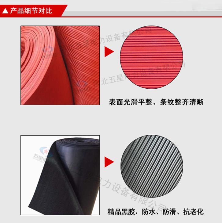 防滑絕緣膠墊產(chǎn)品分為防滑圓點、防滑條紋。 不含雜質(zhì):原生橡膠材質(zhì),不含次生膠,切面不會有粉末, 柔韌性好:具有優(yōu)良的絕緣性能,彈性強,拉伸強度大 光澤度高:原生橡膠材質(zhì),無任何塑料成分,表面光澤度高 無氣泡:五星電力絕緣膠墊,表面無氣泡,無裂痕