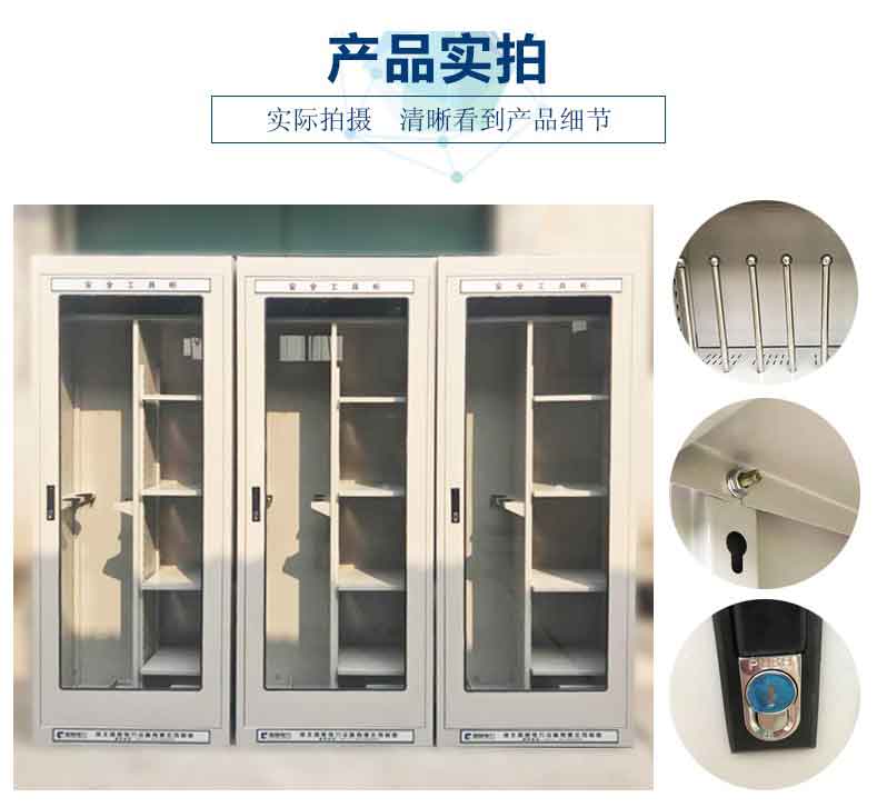 電力安全工具柜又稱安全工器具柜,按功能可以分為普通排風除濕柜,智能烘干除濕柜,智能抽濕除濕柜等 外殼選用1.2優質冷板,采用磷化鋅系、藝術型靜電噴涂,高強度鋼化透明玻璃(外觀色為微機灰)。接地線均配有接地線繞線架及帶夾反光編號牌,使接地線纏繞規范不易損壞,擺放整齊使用方便;絕緣手套配有防粘連撐板,絕緣擋板、絕緣棒、驗電筆、操作桿均設有橡膠墊定位卡,安全帶、腳扣、鑰匙設有專用掛鉤,標示牌按種類分格放置,圍網配有專用包,網桿配有專用筒,網桿座分格放置,防毒面具配有專用箱,呼吸器設有專用滑板。廣泛應用于各種電壓等級的變電站、集控站、線路工區以及電力公司客服中心等單位和部門,并適應不同溫濕度地區的使用。